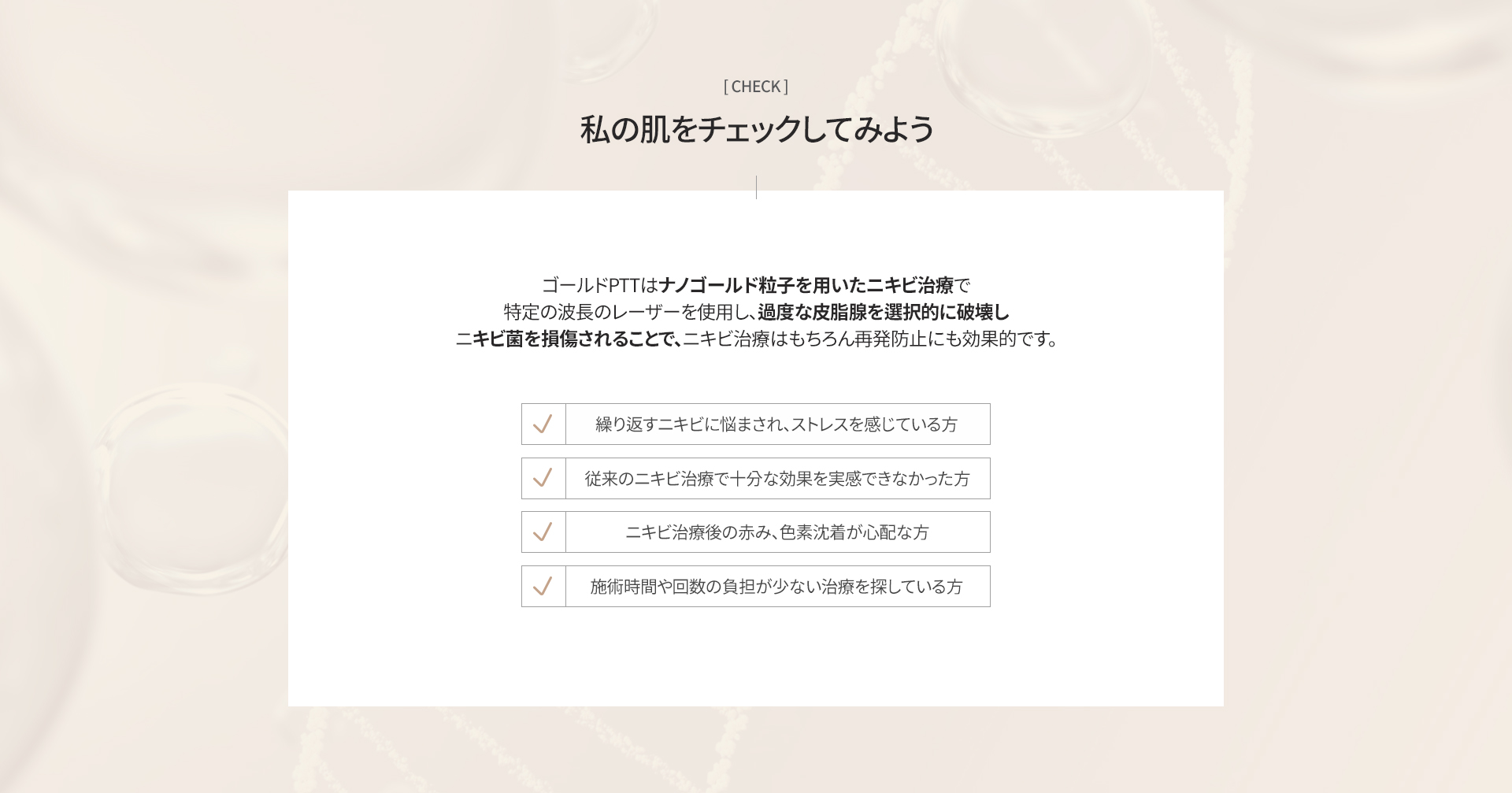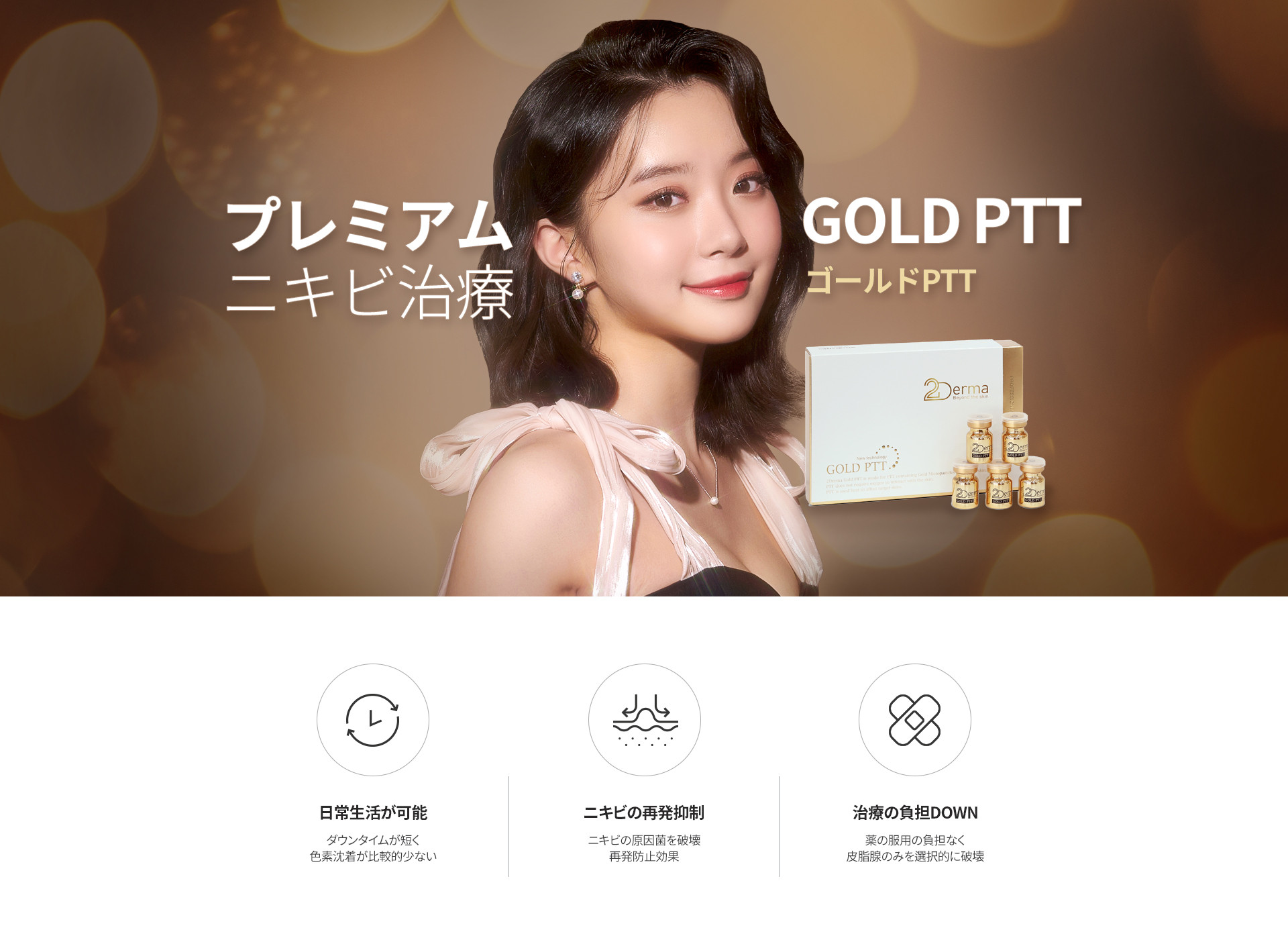 ゴールドPTTは、皮脂腺を破壊してニキビの根本的な原因を改善する施術です。