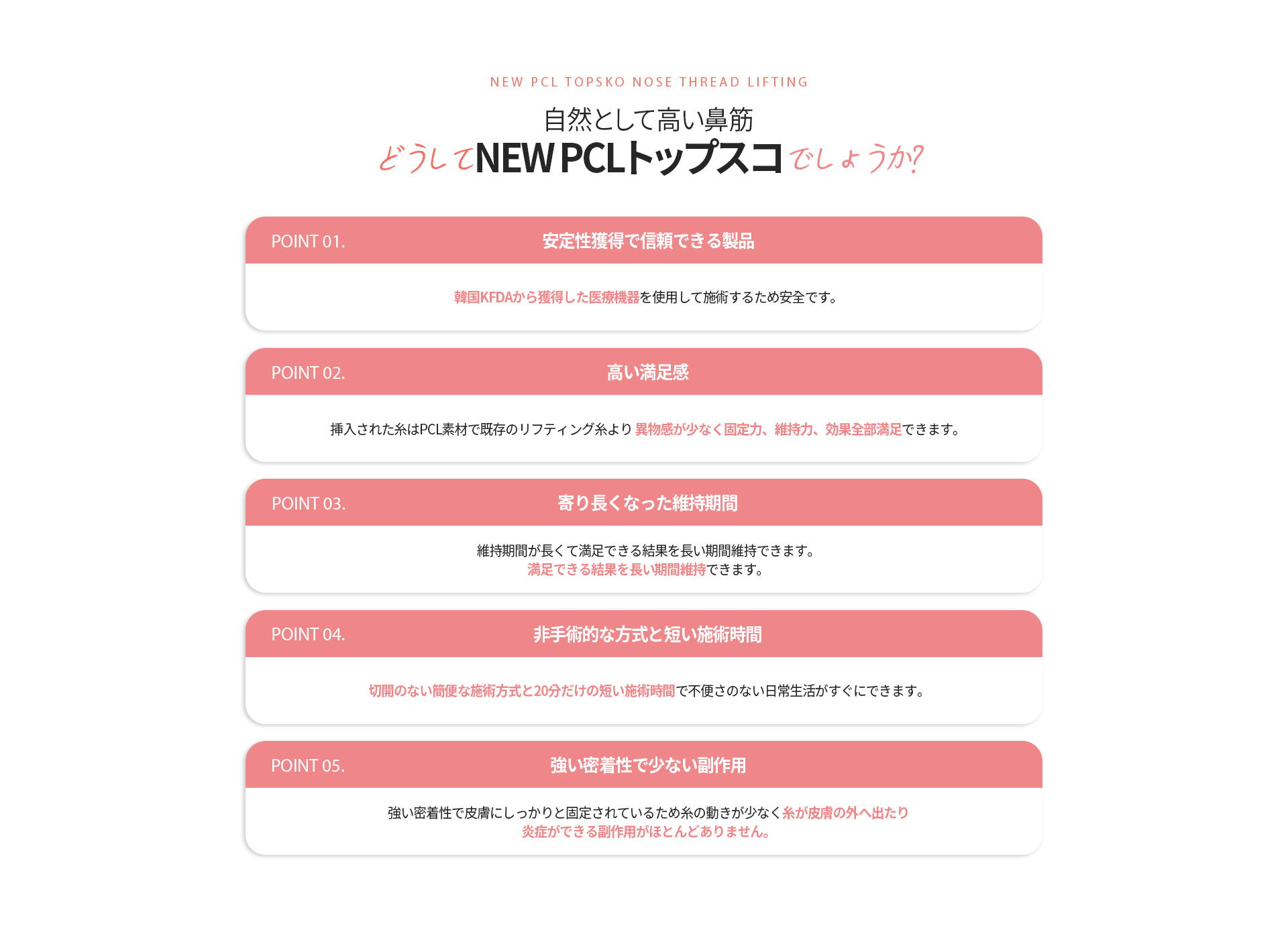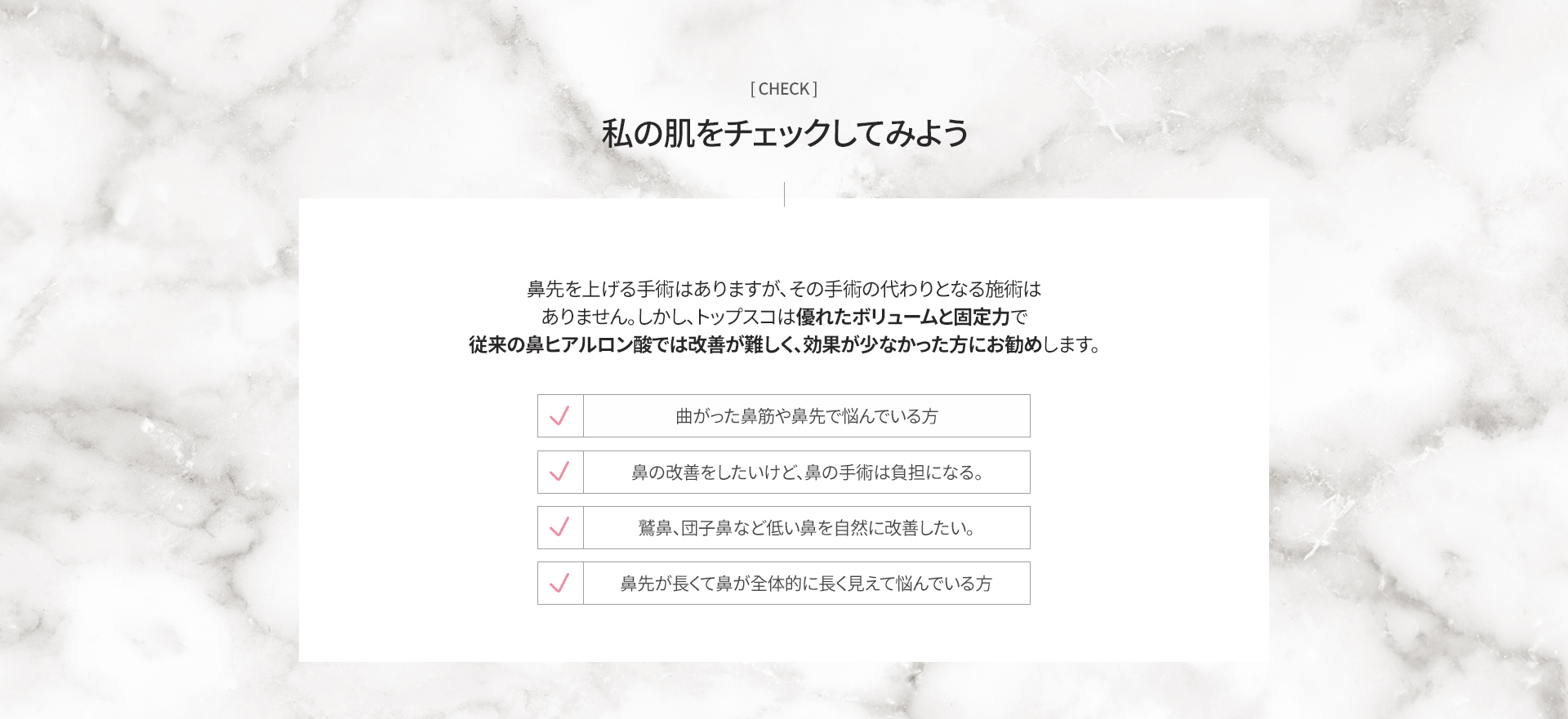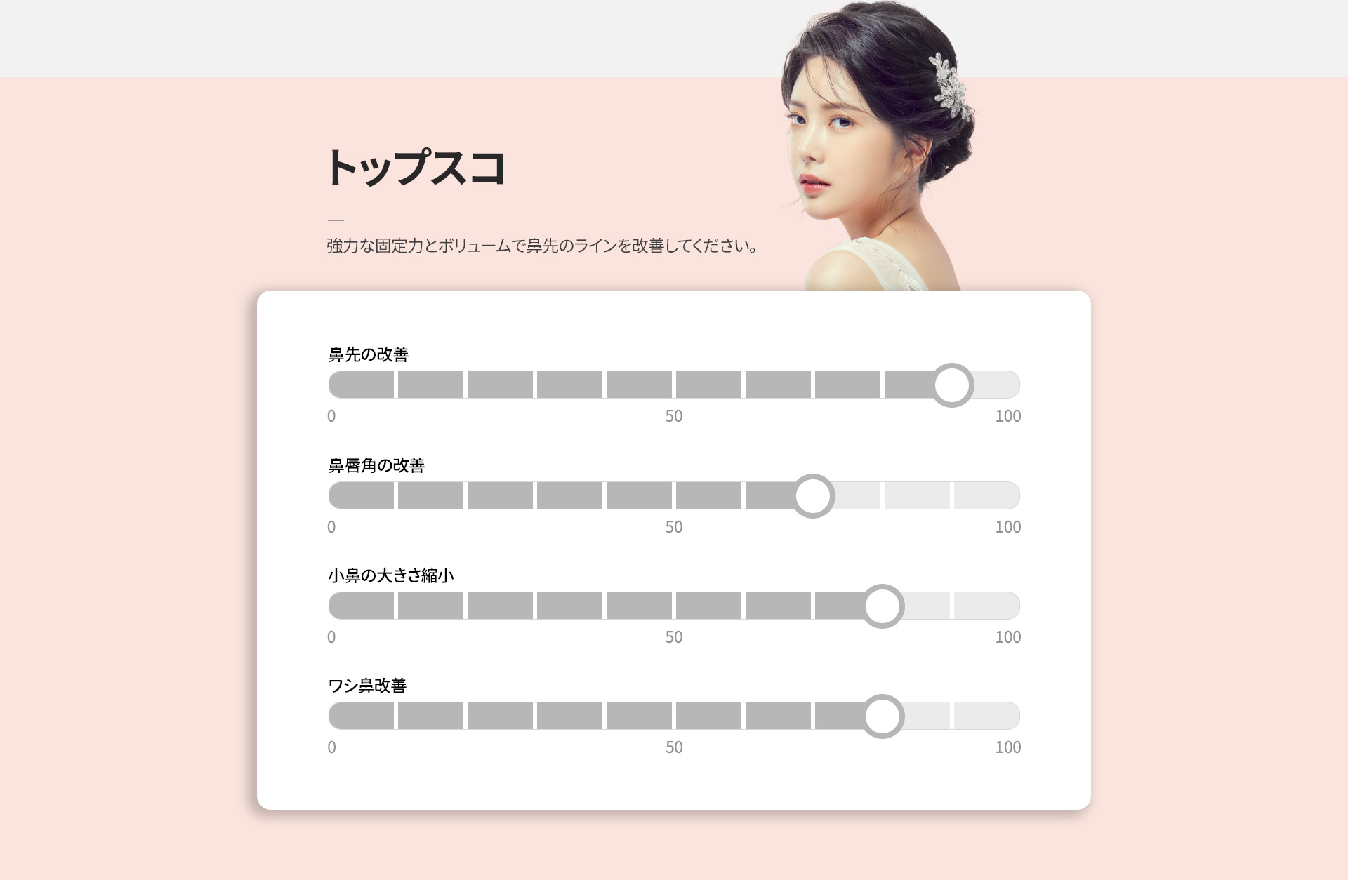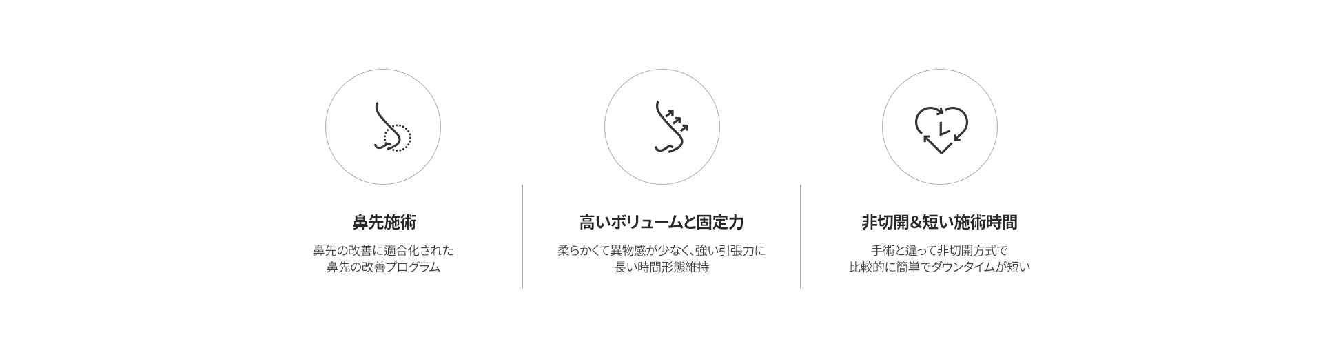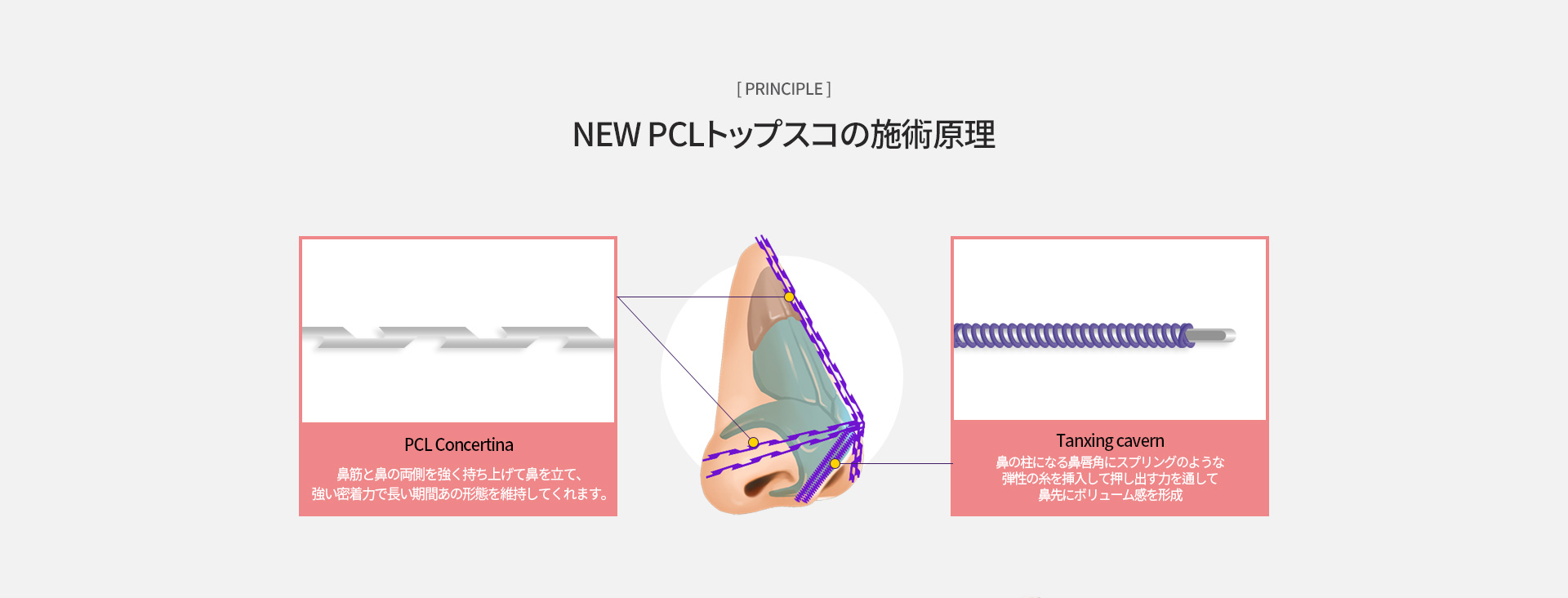 トップスコは、弾力性と支持力のある特殊な糸を用いて、鼻先の形状を効果的に改善する施術です。